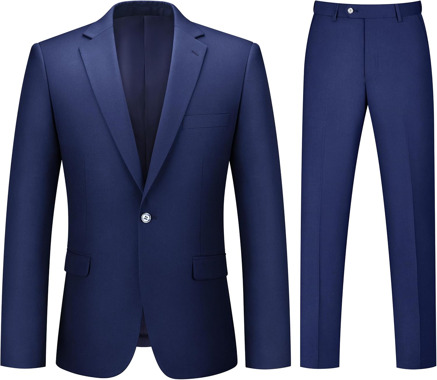 Mens Suit 2 Piece Suits for Men One Button Slim Fit Solid Jacket & Pants Tuxedo Set Business Wedding Party