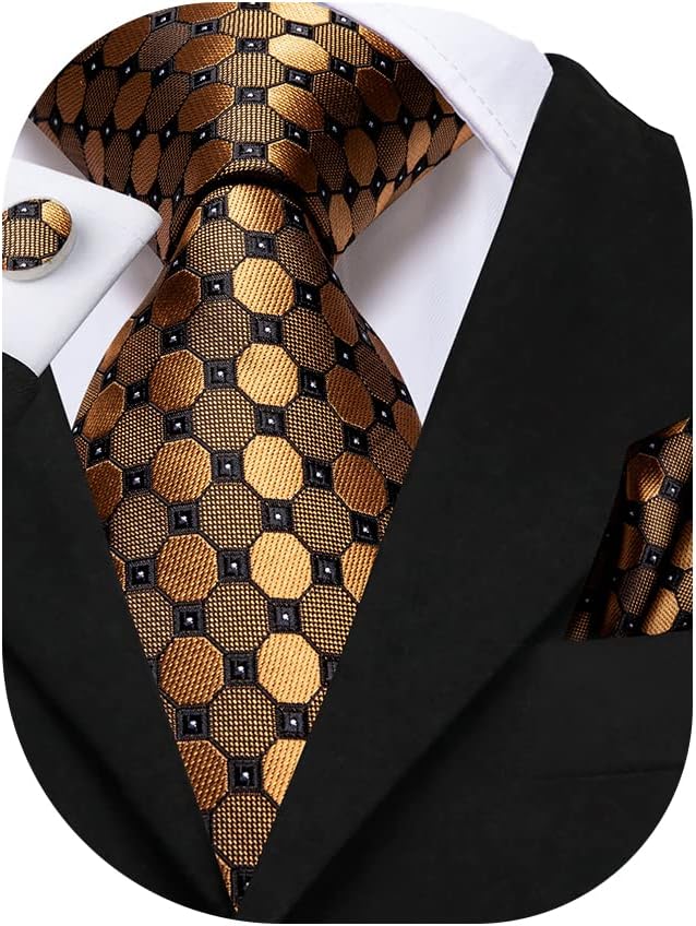 • Stylish Accessory Set: This tie set includes a silk necktie, pocket square, and cufflinks for a polished and coordinated look.