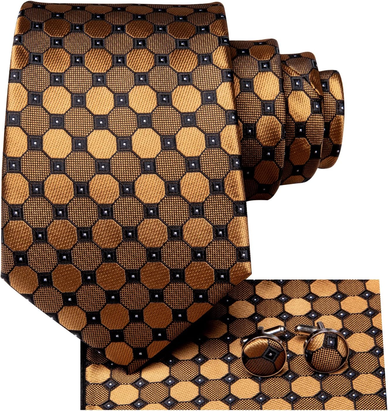 Mens Tie Set Solid Paisley Silk Striped Necktie for Men with Cufflinks Tie and Pocket Square